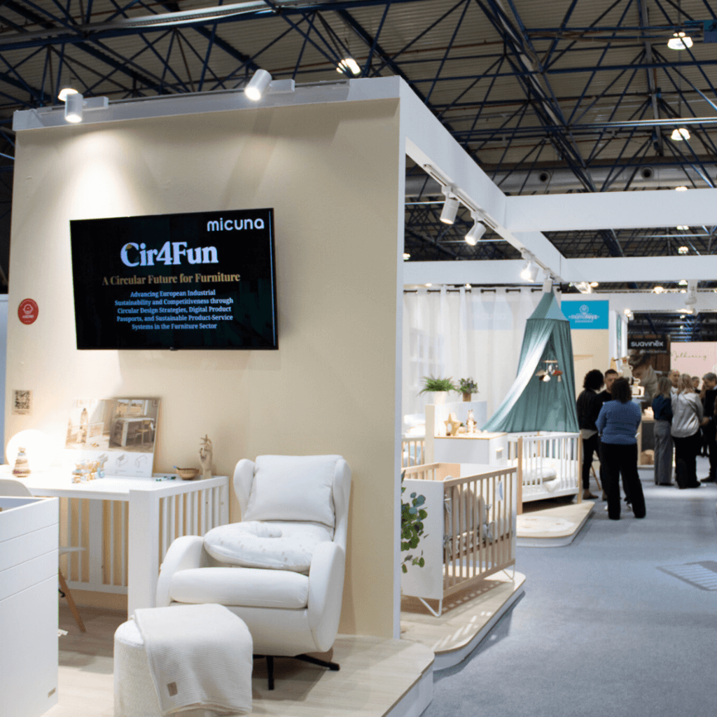 - El equipo de Micuna representó a Cir4Fun en su stand oficial, actuando como punto de contacto para el proyecto durante el evento. Esta presencia permitió mantener conversaciones directas con profesionales del sector sobre los aspectos prácticos de la fabricación circular, concretamente, los métodos para producir muebles más duraderos y con una menor huella medioambiental. Fue una muy buena oportunidad para demostrar cómo las innovaciones del proyecto se traducen en entornos industriales reales.