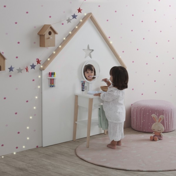 Con el lavabo Micussori podrán aprender los hábitos de higiene desde pequeños, ayudándoles a desarrollar su autonomía. Se compone por un espejo de seguridad irrompible, con posibilidad de regularlo a varias alturas y adaptarlo al crecimiento de los pequeños. Cuenta con un lavabo con tapa, estante y una barra colgadora, para cuando ya no les haga falta, convertirlo en tocador o mesita auxiliar. ¿No te parece el regalo perfecto? ¡Lo es!