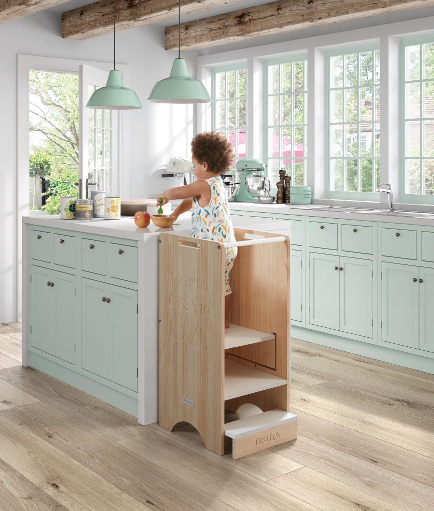 Gracias a las torre de aprendizaje Trott@, cocinar en familia será aún más sencillo, pues permiten a los más pequeños alcanzar el banco de la cocina y sentirse cómodos mientras ayudan a sus papás a preparar esta receta.