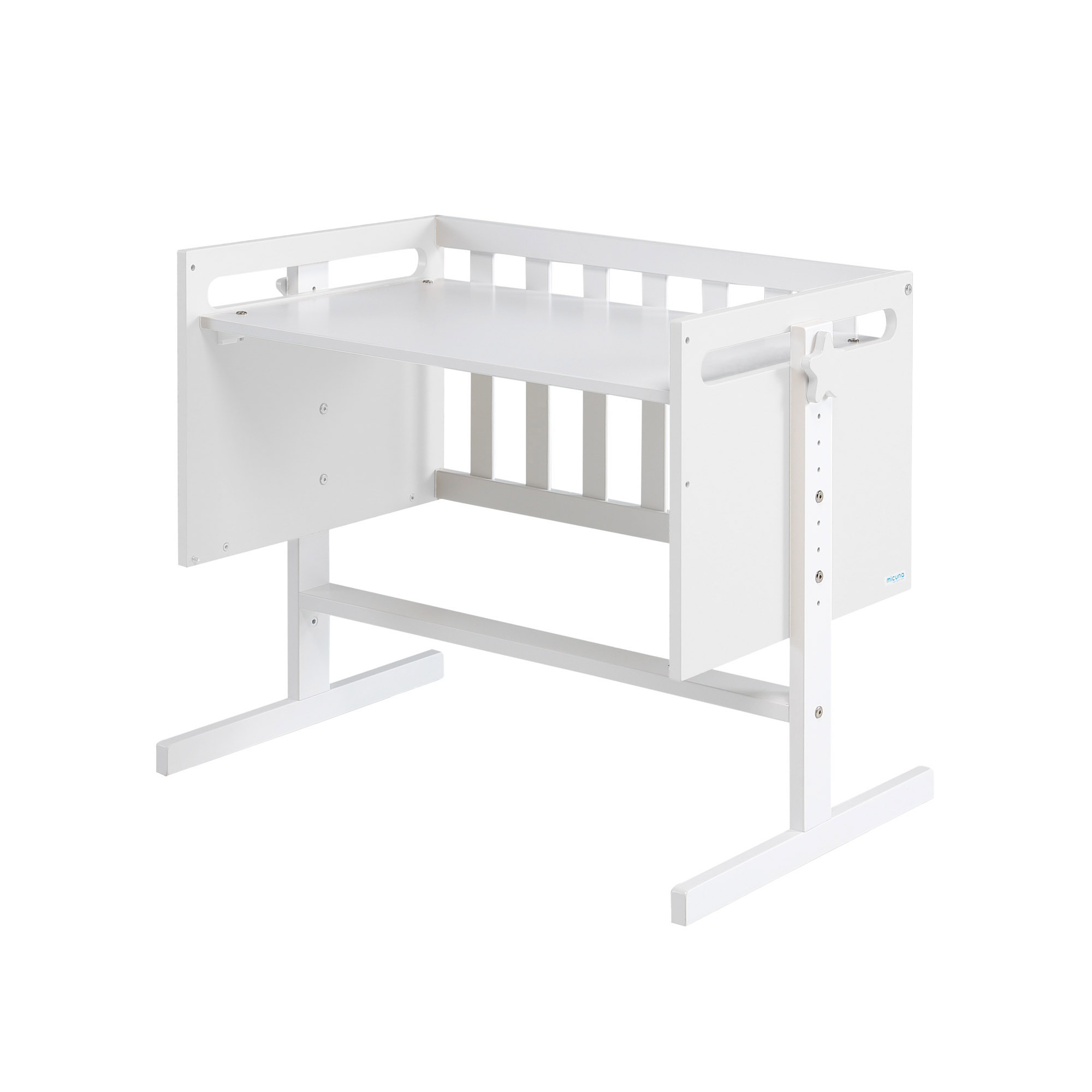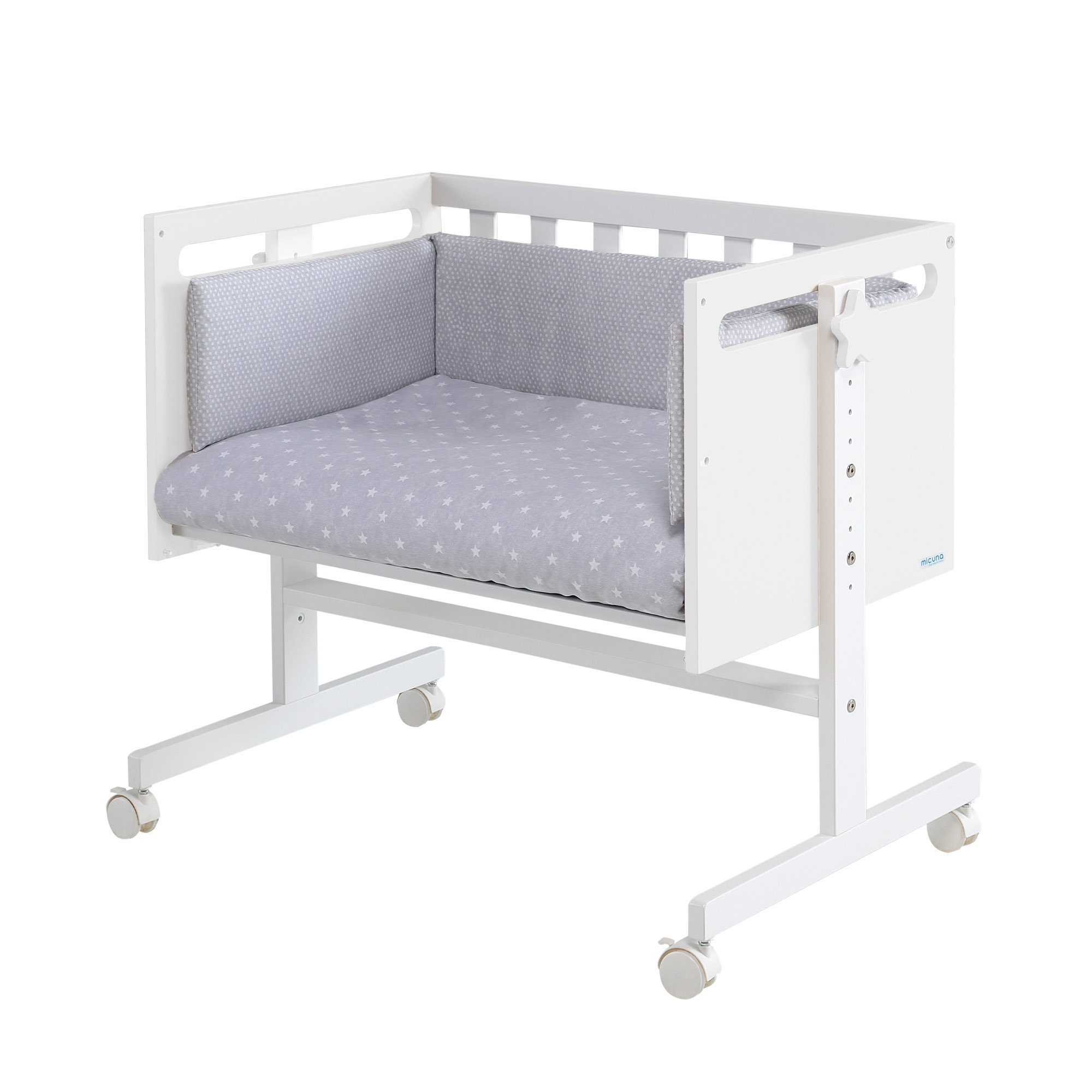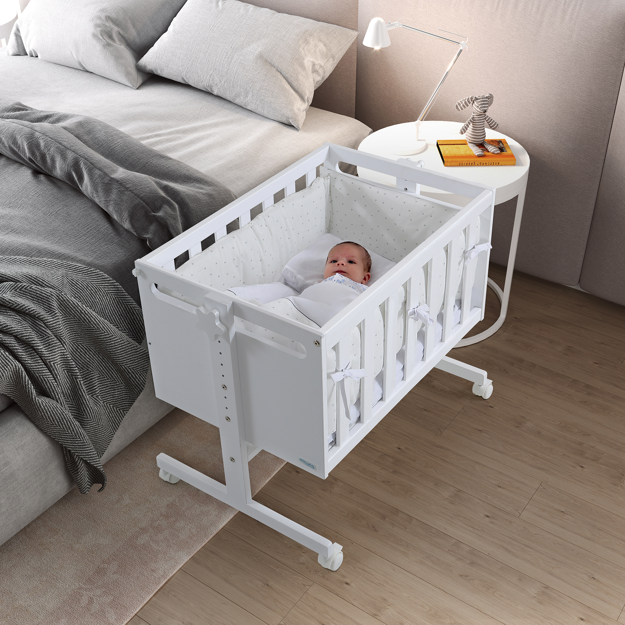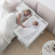 Características: Convertible en minicuna, colecho, juguetero, escritorio y sofá / Regulable en 7 alturas / Lateral desmontable / 4 ruedas con freno / Incluye correas anclaje cama y colchoneta / Peso máximo soportado: 14 kg.